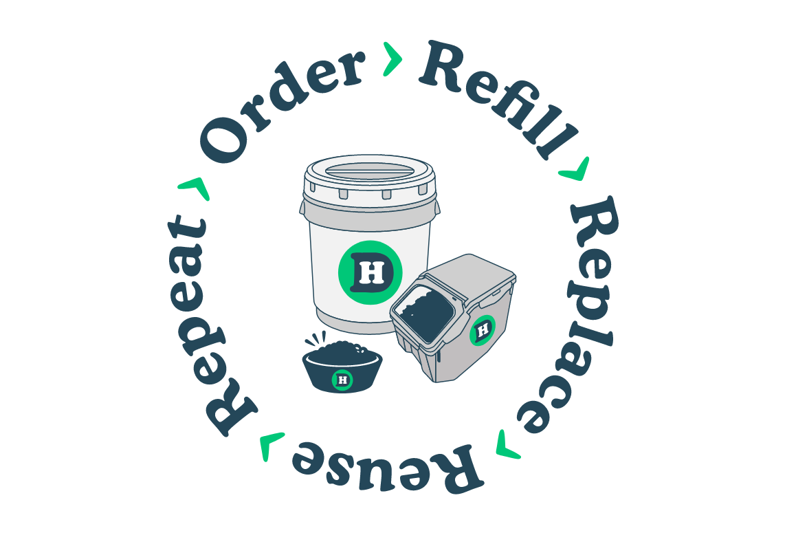 Our Refill & Replace subscription will save you time, save you money and save about 96 single-use plastic dog food bags from landfill.